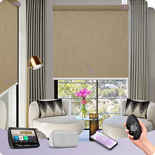 Bringnox Motorized Blinds with Remote,100% Blackout Smart Roller Blinds Compatible with Apple Homekit Google Home and Alexa Via HUB,and Customized (Linen Beige-02)